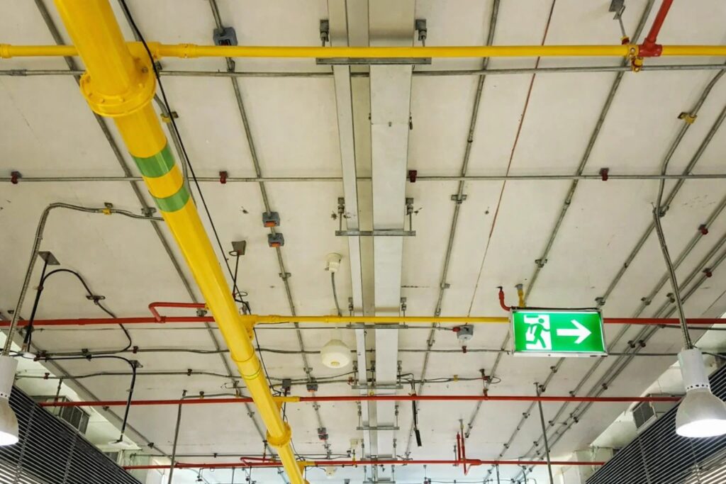 Это защита от пожаров и аварий: автоматическая пожарная сигнализация (АПС), система оповещения (СОУЭ), автоматическое пожаротушение и огнезащитная обработка конструкций. Их задача — сохранить жизнь и имущество.